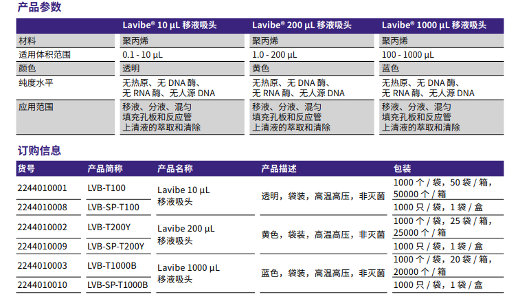 Lavibe® 移液吸頭具有高潔凈級(jí),經(jīng)過(guò)認(rèn)證,無(wú)DNA酶、無(wú)RNA酶 、無(wú)熱原,可應(yīng)用于多種實(shí)驗(yàn)步驟,包括液體移取、分裝、混勻,實(shí)驗(yàn)容器和工作板加樣等。